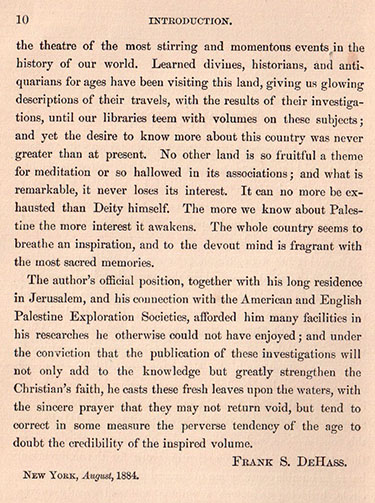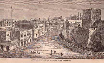 In a previous post I began a thread on a 19th century Bible Lands text by Rev. Frank S. DeHaas. This is a typical devout travel account for an American audience by an author who served both a political and religious role. The frontispiece shows the American consulate opposite the Old City wall, shades to come of where the American Embassy might locate if Romney is elected President in November.